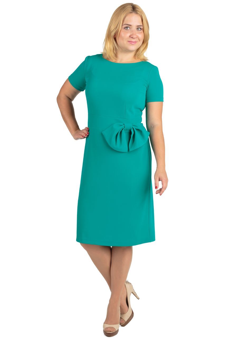 Нежное и романтичное платье с округлым вырезом горловины и коротким рукавчиком, дополненное декоративным бантом, продетым сквозь шлевку. При желании бант можно вытащить и заменить его контрастным кожаным ремешком или цепочкой. Пояс к комплект НЕ входит.