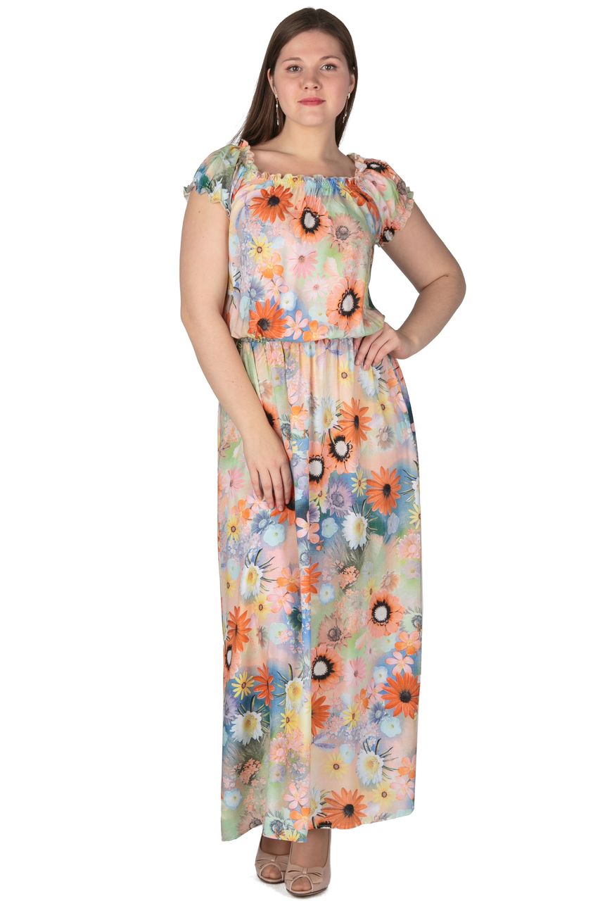 Нежное платье из 100% хлопкового полотна приятной расцветки. Платье по горловине и рукавчику собрано на спандекс, что создает объем и мягкую драпировку, скрывая недостатки фигуры. По поясу платье посажено на неширокую резинку, что позволяет регулировать длину юбки и величину напуска