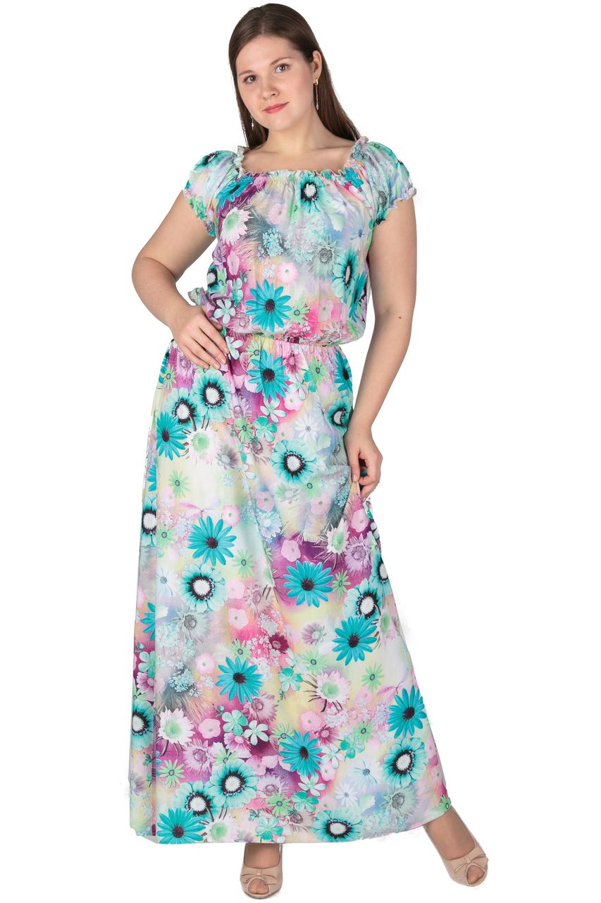 Нежное платье из 100% хлопкового полотна приятной расцветки. Платье по горловине и рукавчику собрано на спандекс, что создает объем и мягкую драпировку, скрывая недостатки фигуры. По поясу платье посажено на неширокую резинку, что позволяет регулировать длину юбки и величину напуска.