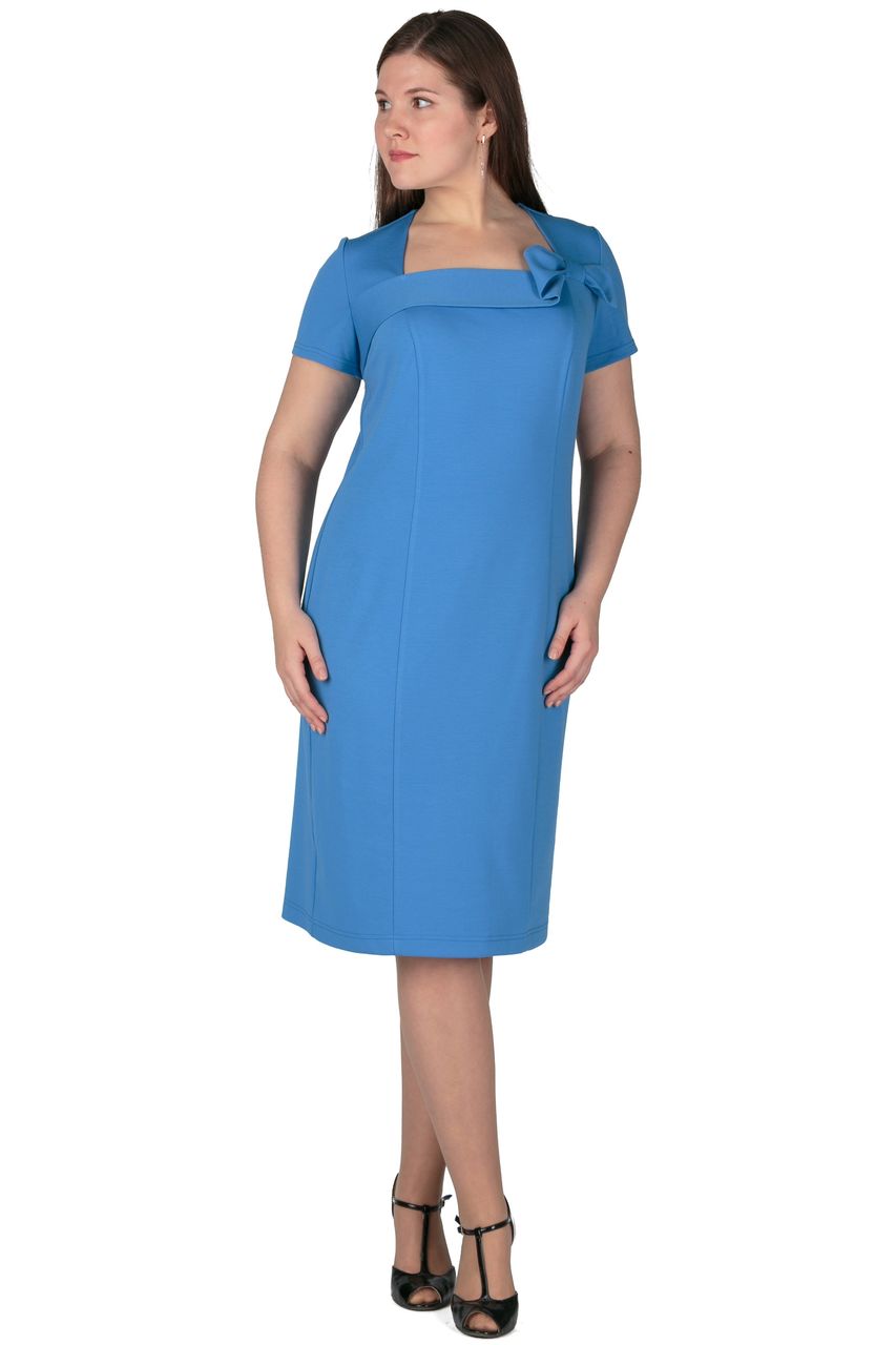 Стильное платье в офисном стиле, выполненое из качественного плотного материала "милано" в нескольких сочных ярких расцветках. Горловина изделия оформлена вырезом-каре и украшена отложной планочкой, переходящей в милый бантик, который продет в шлевку. Бант в ней не зафиксирован и легко вынимается для утюжки. Короткий рукав позволяет комфортно использовать вместе с жактами, кардиганами и легкими осенними плащам.