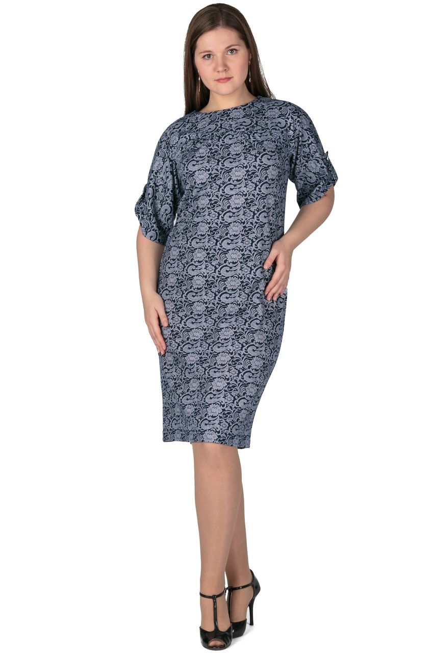 Великолепное платье винтажной расцветки с округлым вырезом горловины, и очаровательным подрезом, переходящим в цельнокроеный рукавчик. На рукаве предусмотрена декоративная шлевка, драпирующая рукав нежными складками. Свободный силуэт скроет небольшие недостатки фигуры. На спинке шличка
