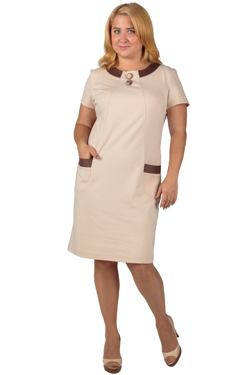 Великолепное платье из плотного трикотажного полотна с стиле "Шанель". Платье украшено контрастной по цвету отделкой на воротничке и на кармашках. Вставки дополняются пуговицами в тон отделки. Короткий рукавчик позволяет использовать его как офисный вариант, комбинируя с облегченными жакетами или кардиганами.